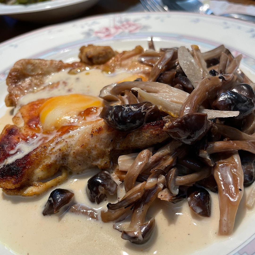 それをソースに使って、チキンの皮面をしっかり焼いて・・・