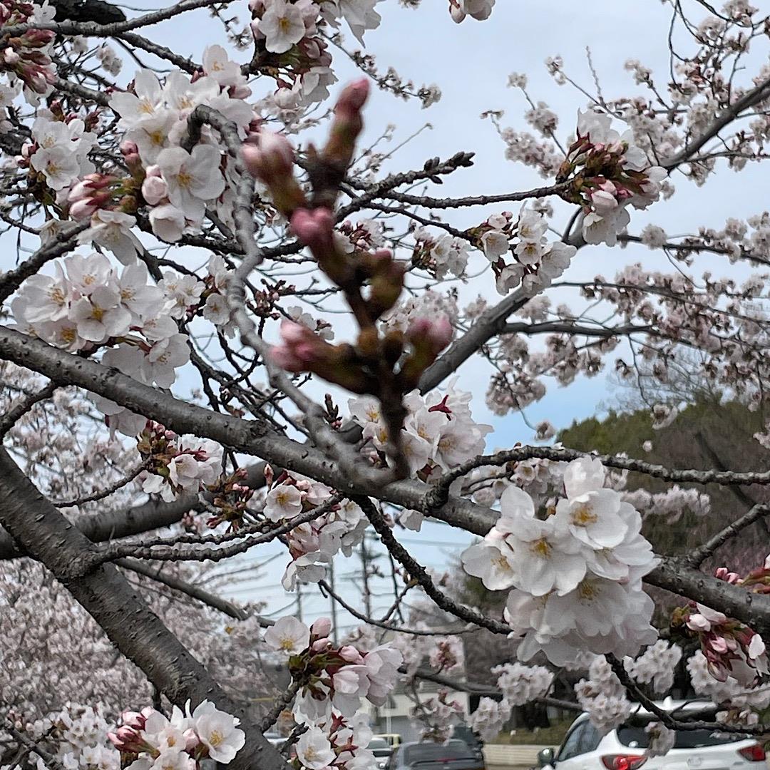 ほぼ満開の桜ですが、まだしっかり蕾で頑張っている花芽もあって、