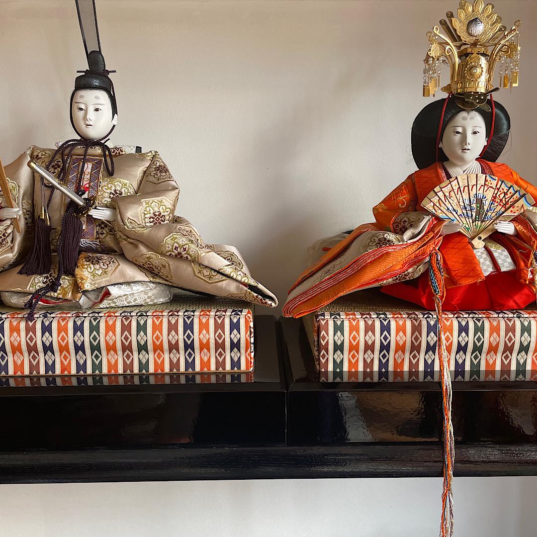 娘の雛飾りです。毎年場所がないので、お内裏様とお雛様のお二人だけです。