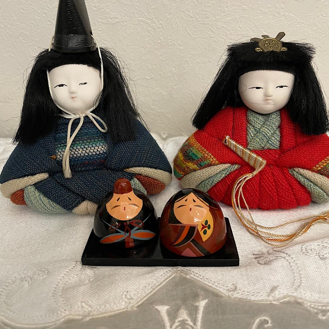 もう一枚はもっと以前から家にある(50年ぐらい?)可愛らしいおふたりです。こけしは20年ぐらい前かな。