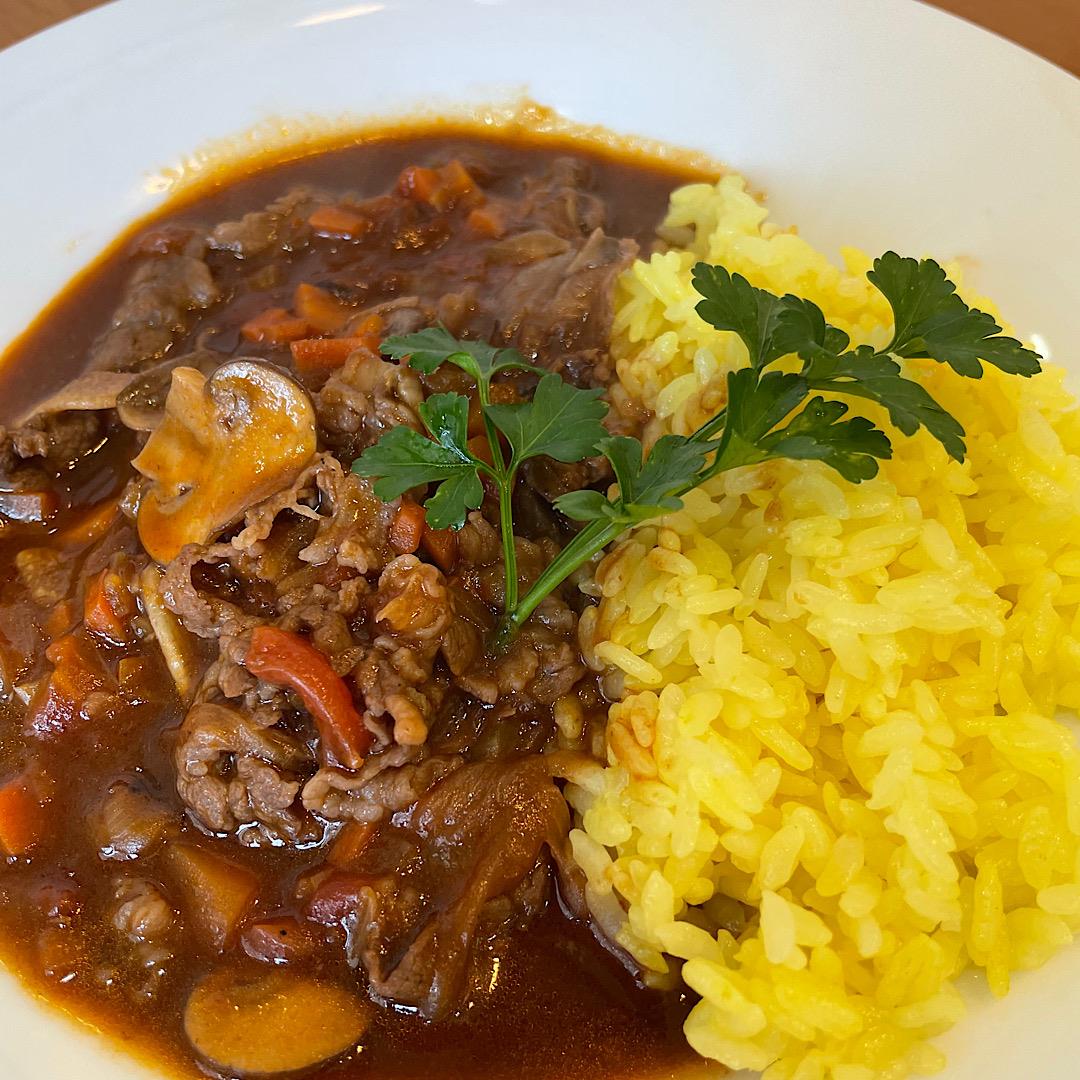 ハッシュドビーフも市販のルーは使わずに野菜とお肉の旨みでシンプルに美味。