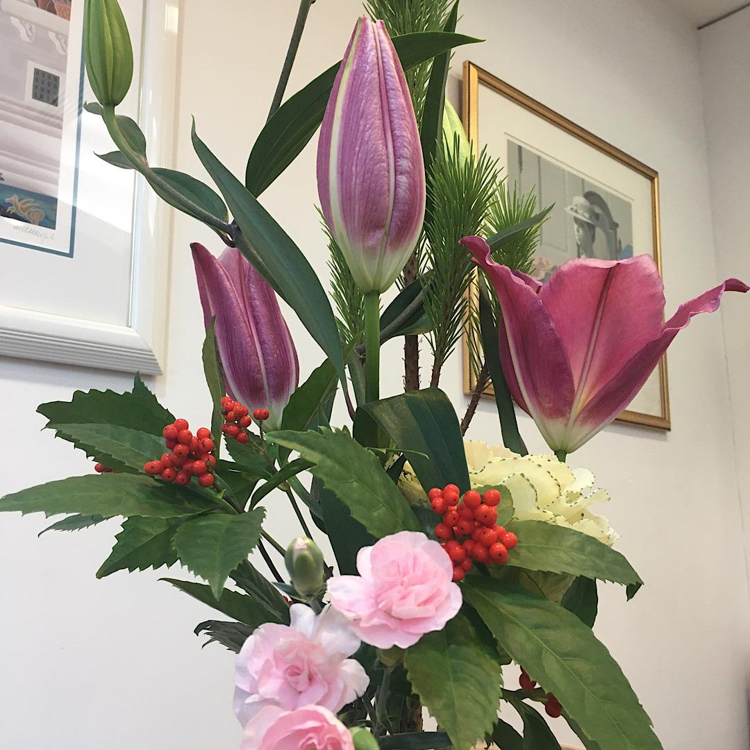 簡単なおせちとユリの生け花