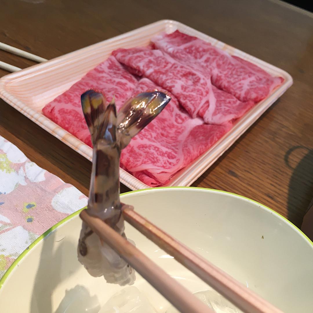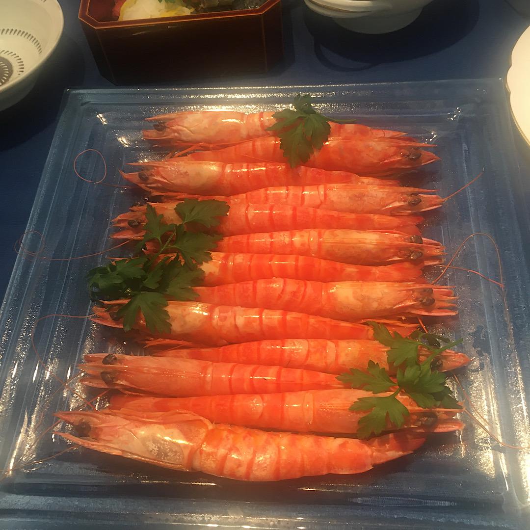 作る前に、活きてる海老さんをワサビで頂く。おいしい!