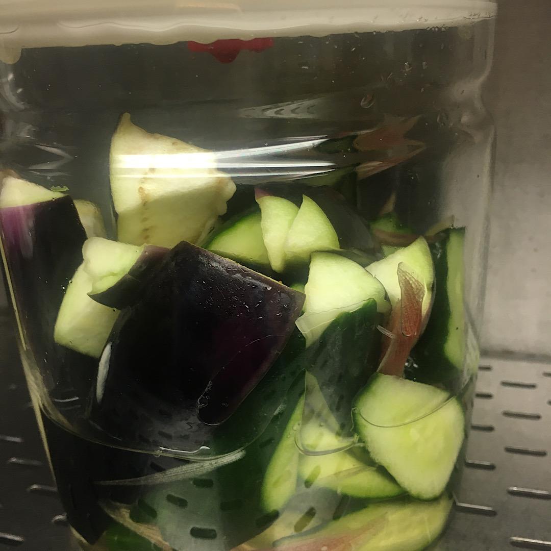 茄子やキュウリ、大根、みょうがなど、手抜きで簡単のお漬け物を作ってます。