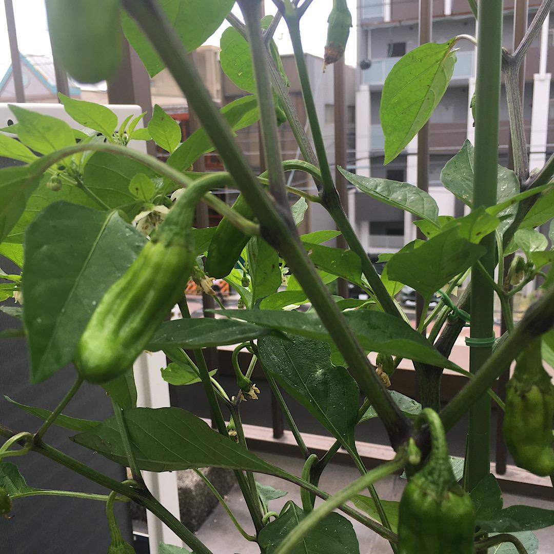 今年は初めてししとうを育ててます。屋上にプランターを置いて、きゅうりとバジルと枝豆とアスパラ。