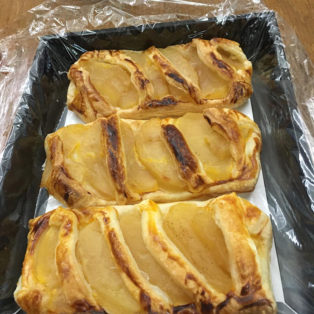 『お母さんが煮たリンゴを、市販のパイシートにのせて焼いたよ❣』