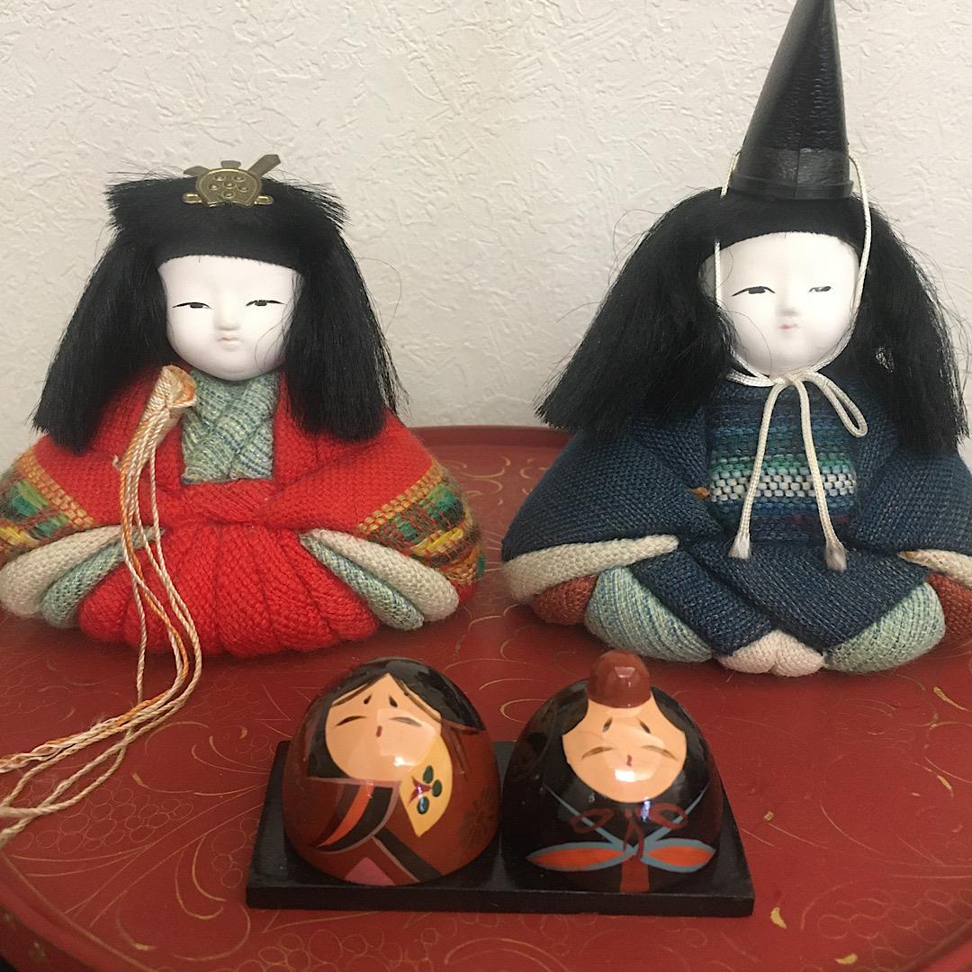 娘のお雛さま、大きいので皆さんをお出しすることが無理で、毎年お二人だけはお店の棚に飾ってあります。
