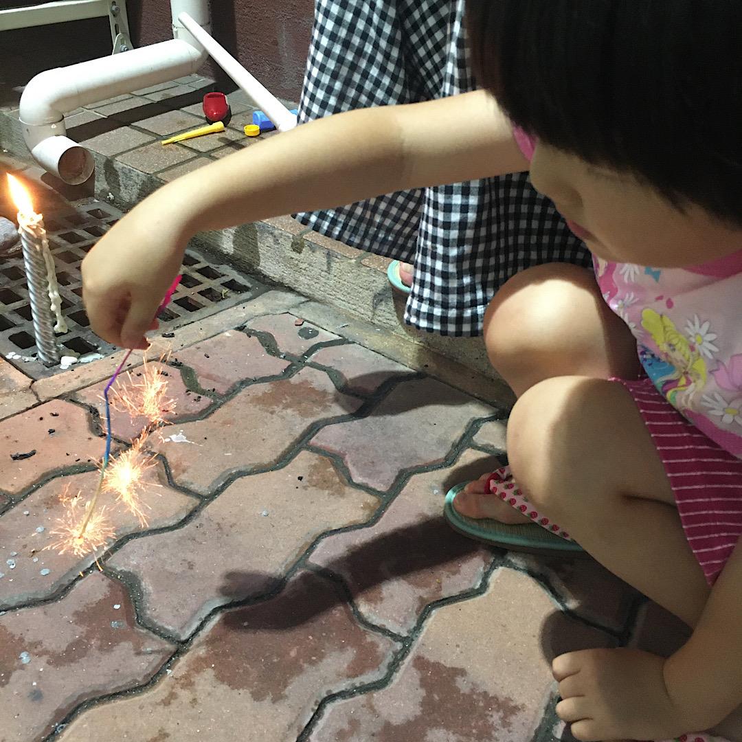 どこもいけないお盆休み。子供たち家族とご’飯を食べて小さな花火大会。