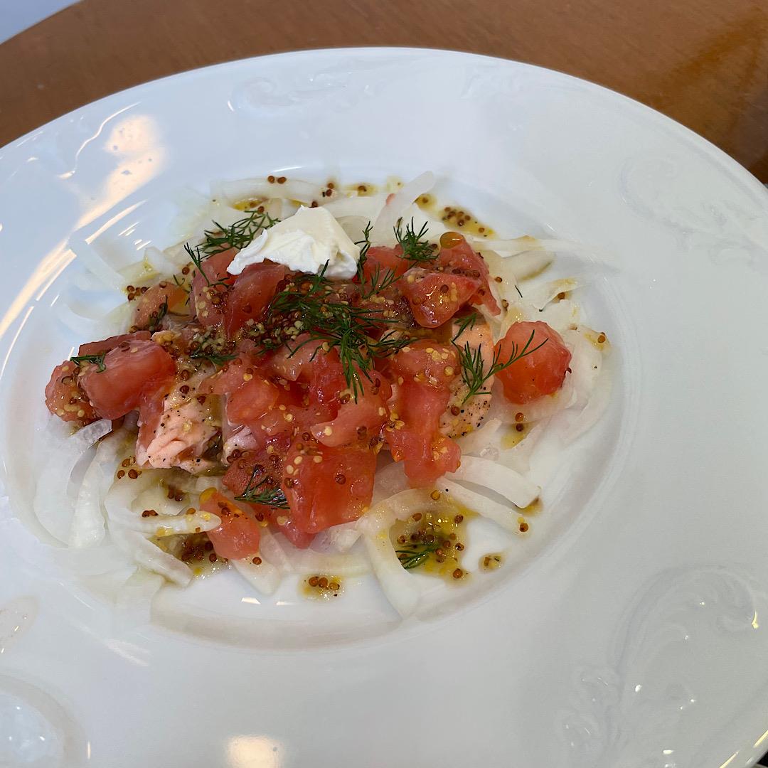豚肩ロースのシャリキュトリー、オニオングラタン